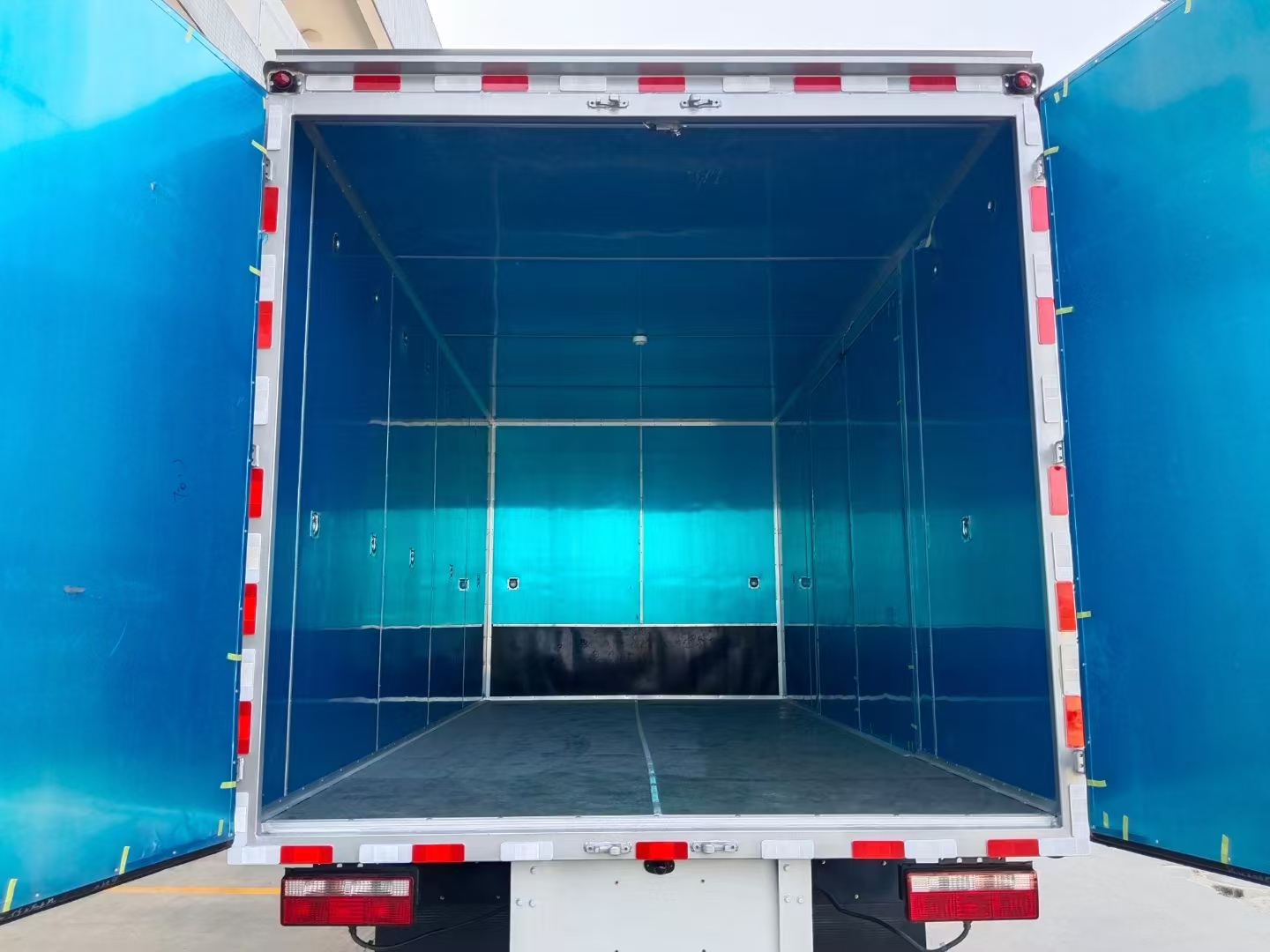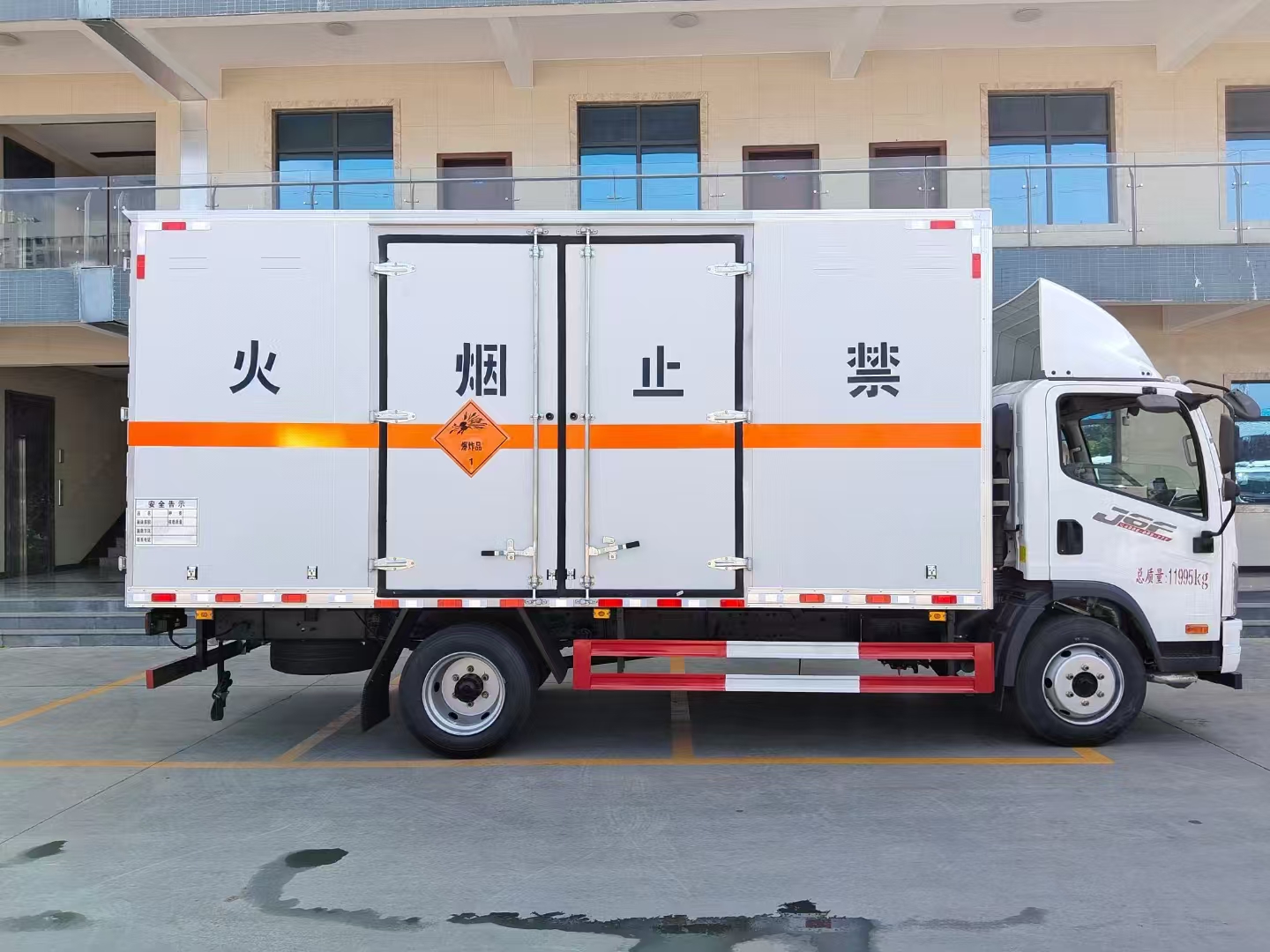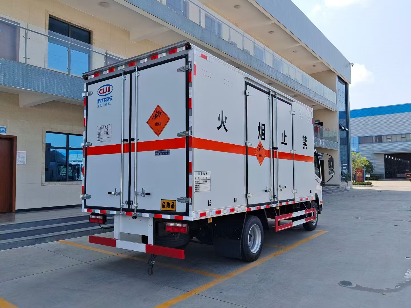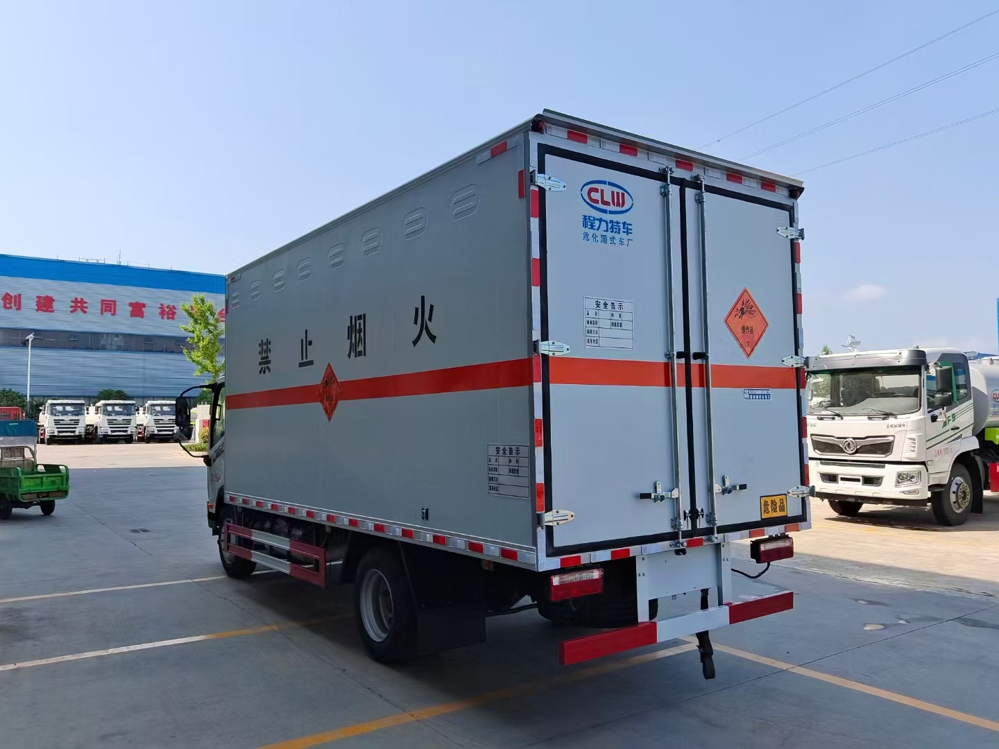 | 貨箱配置 | 廂體為雙層金屬骨架結(jié)構(gòu),外板采用冷軋鋼板,中間填充阻燃泡沫,內(nèi)飾為鋁板。底板為平板上鋪防靜電膠皮。廂內(nèi)兩側(cè)加裝固定貨物臥環(huán),門框帶防盜報警器,頂部帶煙霧報警器,廂體右側(cè)選裝側(cè)門,隨車配2個滅火器,危險標(biāo)志牌,防火帽,危險品三角頂燈。 (尾部可選裝液壓升降尾板) | ||