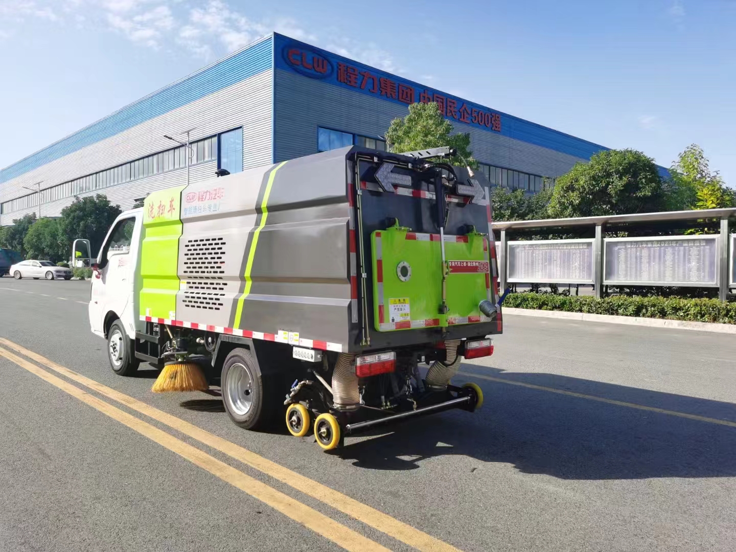 | 上裝配置 | 采用云內(nèi)57馬力副發(fā)動機(jī)、5.0高壓離心風(fēng)機(jī)、50L高壓泵、廈門南超自動離合器、1.5清水箱、1.8立方不銹鋼垃圾箱。中置左右立掃、后置吸盤、箱體頂部加裝高壓槍旋轉(zhuǎn)擺臂。全車?yán)浼八淙坎捎貌讳P鋼板焊接而成。清水箱容積1.5立方米、垃圾箱容積1.8立方。清水箱加裝低水位報(bào)警系統(tǒng),垃圾箱內(nèi)部加裝污水箱自溢系統(tǒng)。單次注滿水滿負(fù)荷最大作業(yè)時長可達(dá)35至45分鐘。 | ||
