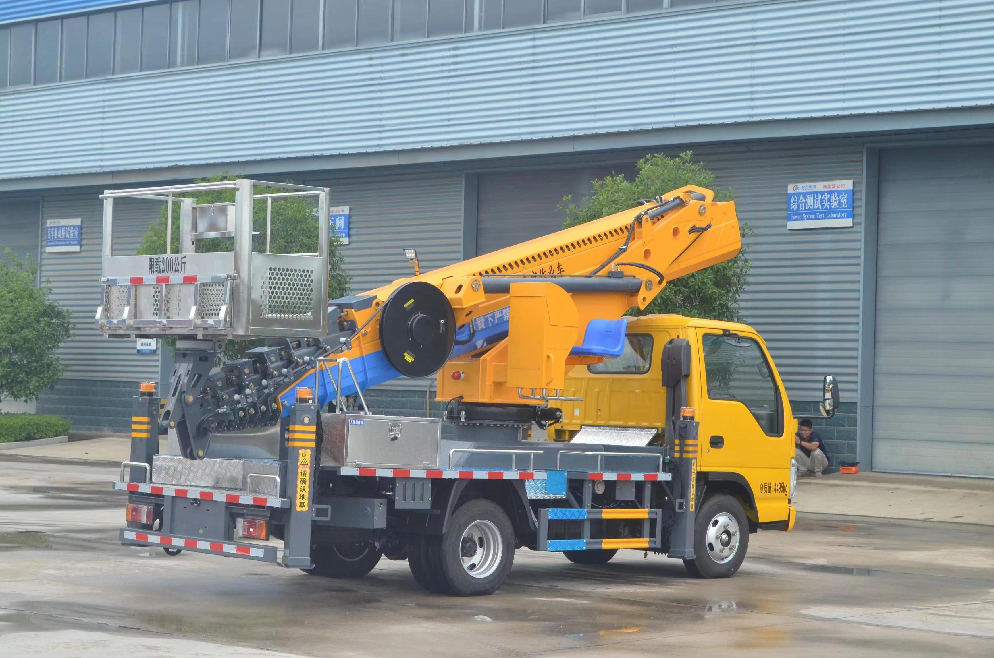 上裝配置 不銹鋼圍欄及防滑走臺板,高強度不銹鋼工作平臺 (尺寸:1600X700X1000mm),七節(jié)十四邊形型工作臂,同步伸縮,回轉(zhuǎn)裝置 360 度連續(xù)回轉(zhuǎn),前 V 后 V 型支腿,單獨可調(diào)(控制),電控操作,另配有手動應急操作 控制系統(tǒng),CAN 總線控制系統(tǒng),配有無線遙控器、實現(xiàn) 無級調(diào)速,靜液自動調(diào)平; CL5045JGK6ADS 型高空作業(yè)車基本功能安全配置:作業(yè)車可以實現(xiàn)平臺載荷 200KG,最大作業(yè)高度 33 米,最大作業(yè)幅度 15 米。 上下車自動互鎖裝置,用于上下車互鎖,防止誤操作發(fā)生危險,手動應急泵,當發(fā)動機及主泵發(fā)生故障時,可通過應急系統(tǒng)將工作人員送回到地面及整車收回至行車狀態(tài),工作平臺緊急停止 裝置,緊急動限制工作幅度,當工作幅度達到規(guī)定值時,自動限制危險方向工作;當出現(xiàn)支腿支地不實時(軟腿),舉升臂架將限制危險方向工作。(選配) 夜間安全警示裝置,在車輛上有工程頻閃燈,LED 照明燈發(fā)動機點火熄火,控制器可對發(fā)動機進行點火,熄火控制;被限制工作時,可通過“強制”功能拓展工作;
